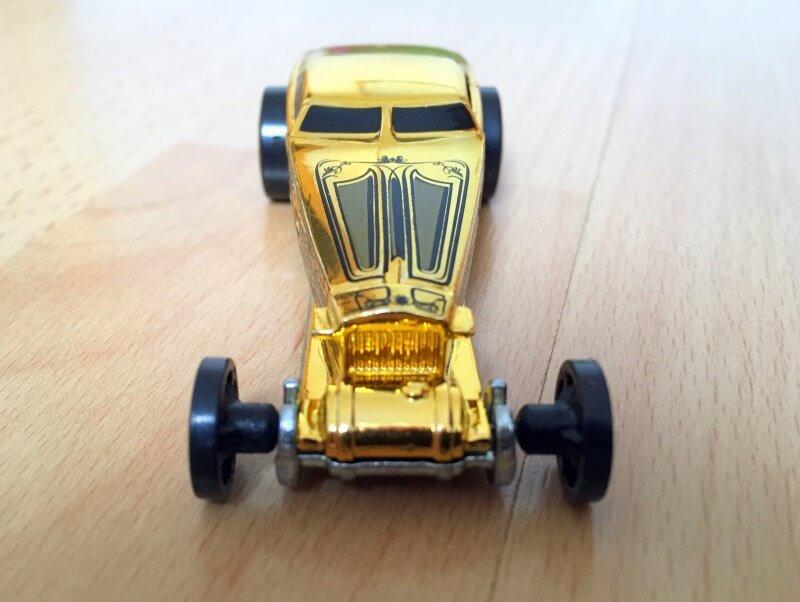 Asi bych si auto, které v reálném světě neexistuje, do sbírky sám od sebe nepořídil. Jenže tohle jsem dostal k nákupu v hračkářství úplně zdarma. Líbí se mi jeho barva i zvláštní umístění předních kol. Je možné, že jde o nějakou speciální americkou úpravu místního veterána. Pokud tomu tak je, nevypátral jsem, o jaký vůz se jedná 🙂
