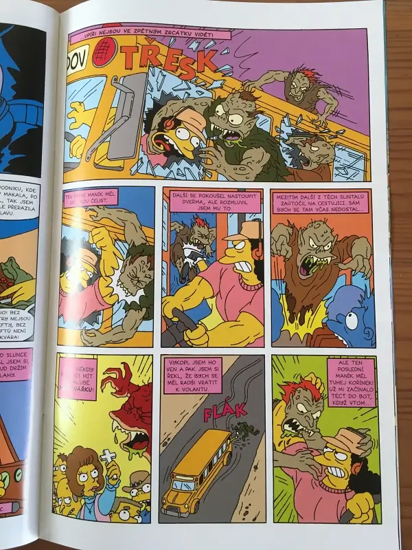 Komiksové vydavatelství Crew sáhlo po stech sešitech věnovaných Bartovi po další edici Bongo Comicsu. Každý měsíc si můžete za 49 korun pořídit komiksové příběhy ze Springfieldu. Zatím máme v rukou čtyři čísla a s nimi i vcelku povedené příběhy našich oblíbených hrdinů mezi nimiž rozhodně vyniká BUSMAN v hlavní roli s autobusákem Ottem, který v postapokalyptickém světě bojuje s příšerami.